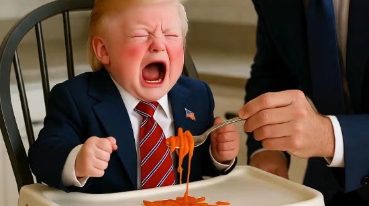 Among the pictures were depictions of a weeping kid being fed spaghetti and the president as a baby…