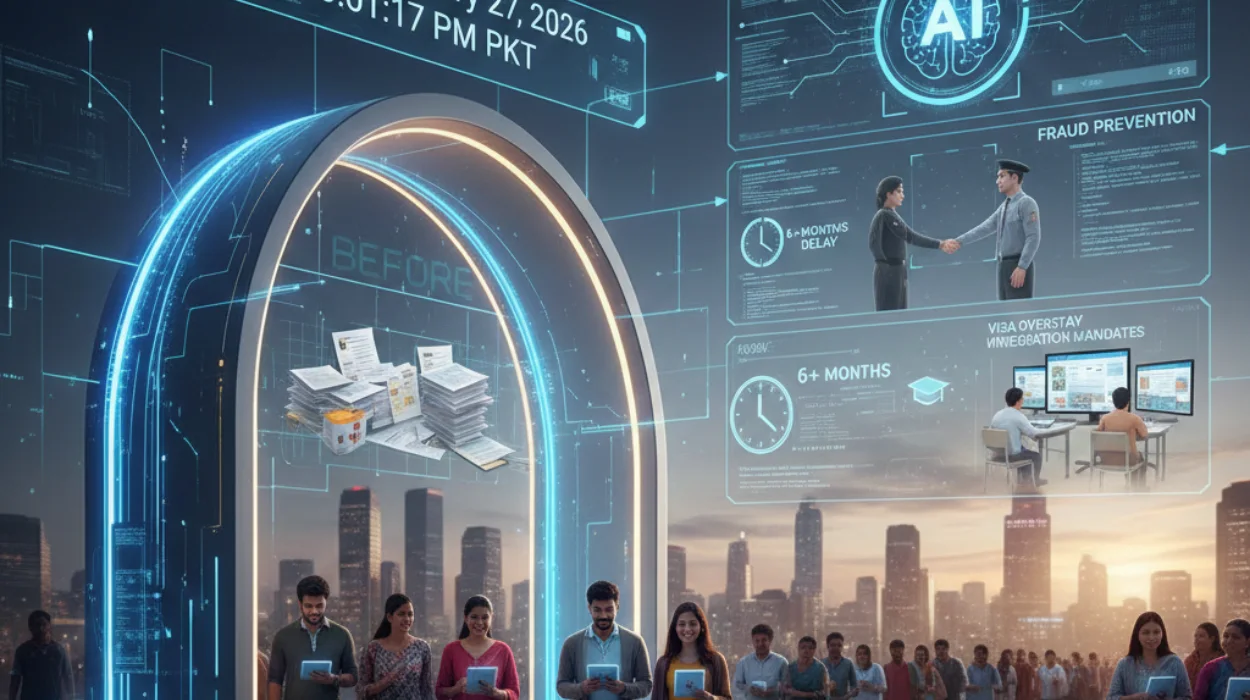 Fraud prevention employs AI screening and cross-verification with Indian authorities. Training combats visa overstays through integration mandates.
