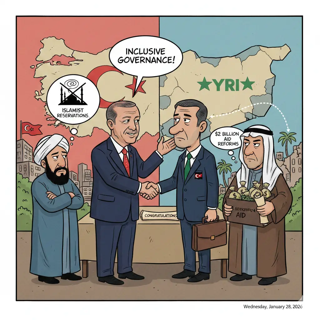 The United States maintains 900 troops in Syria for ISIS containment, with envoy Thomas Barrack meeting al-Sharaa in Ankara last week. EU foreign ministers discussed easing sanctions if HTS distances from extremism. Jordan hosted a summit of 10 Arab states pledging $5 billion for Syrian stabilisation.