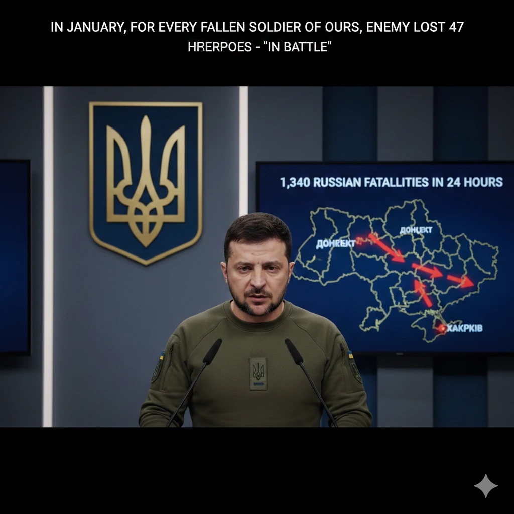 President Volodymyr Zelensky stated during a televised address that Russian forces lost 47 soldiers for every Ukrainian killed in January 2026.