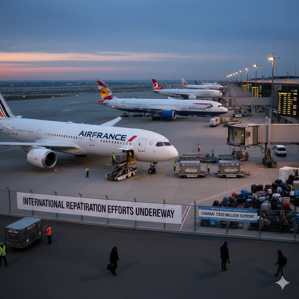 Turkey accepted 850 dual nationals. Uzbekistan flights carried 120 from Erbil. Canada pledged C$20 million support.