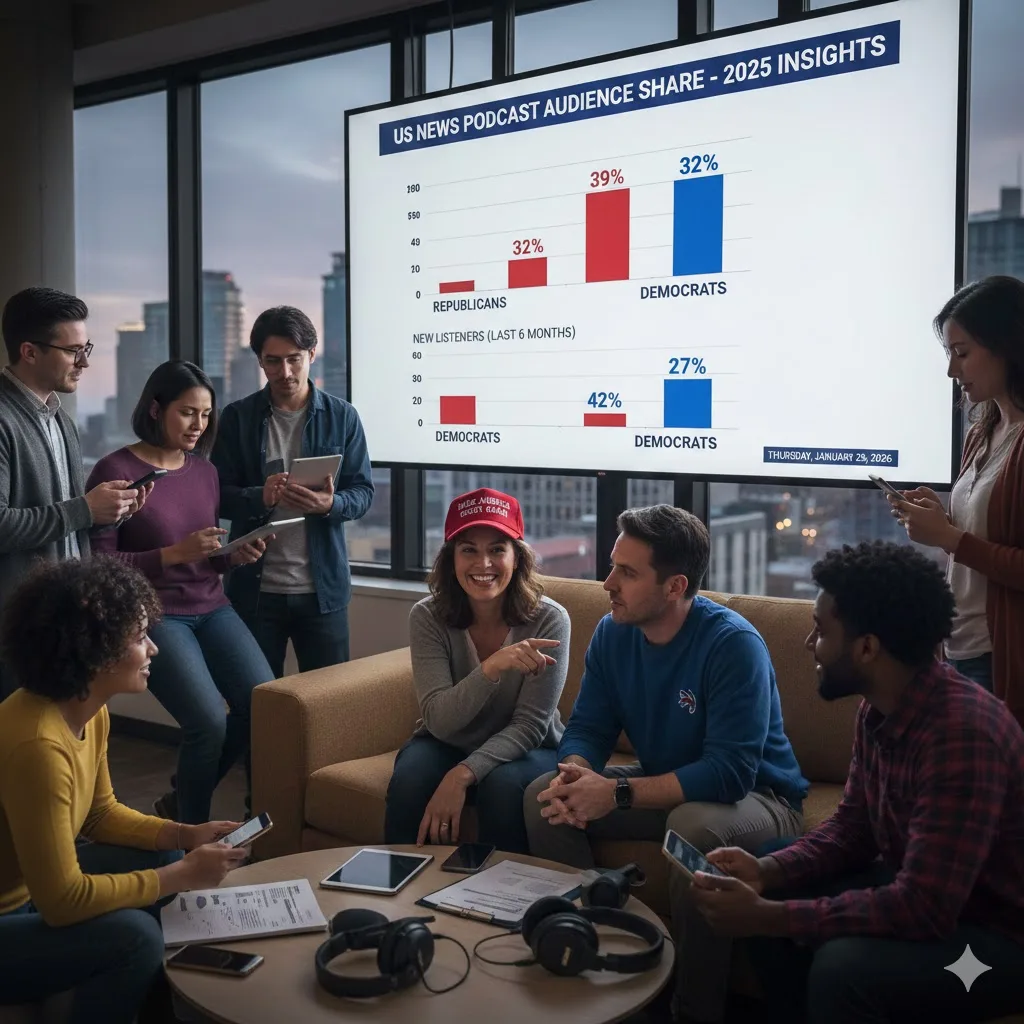 The firm attributed the shift to demographic change among new podcast users, noting that long‑standing podcast listeners remained more likely to identify as Democrats.