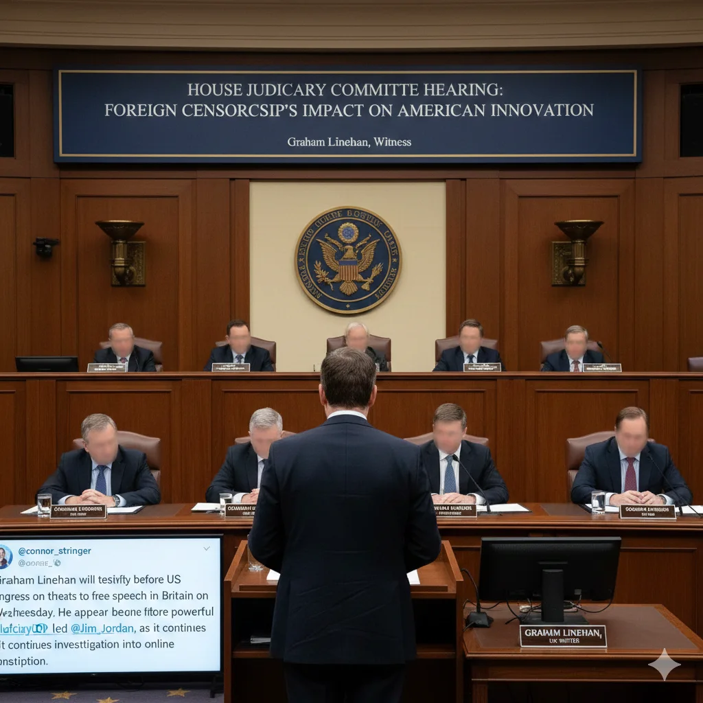 Graham Linehan's congressional testimony centres on his experiences with UK authorities and broader concerns over speech restrictions. The hearing continues the committee's probe into how foreign laws affect online platforms.