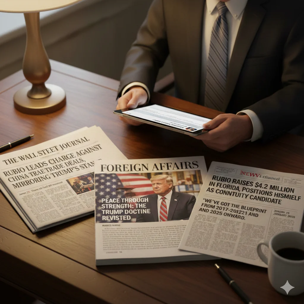 Bloomberg noted Rubio's op-eds in major papers, including a January 18 piece in Foreign Affairs reiterating Trump's "peace through strength" approach. [Bloomberg]
