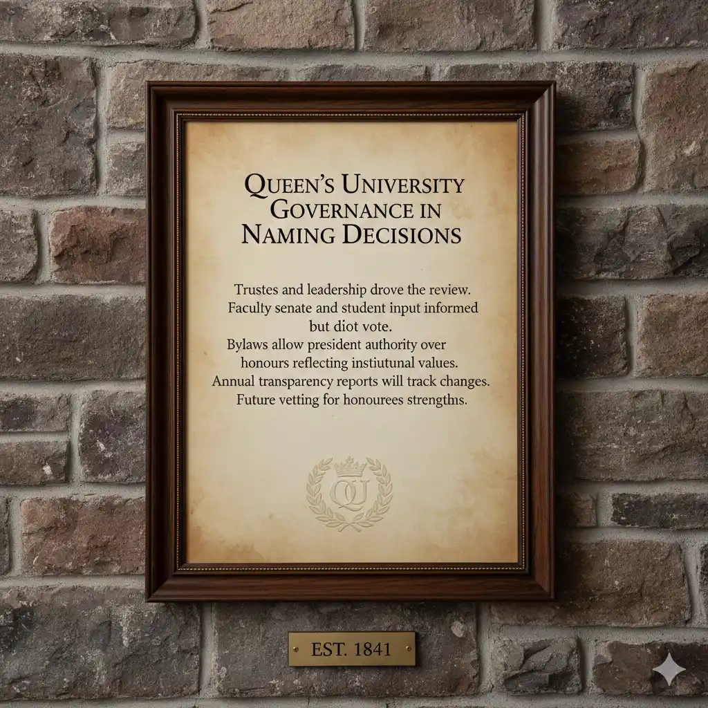 Queen's University emphasised its responsibility as a peace-focused institution to uphold high standards in honours and symbols.