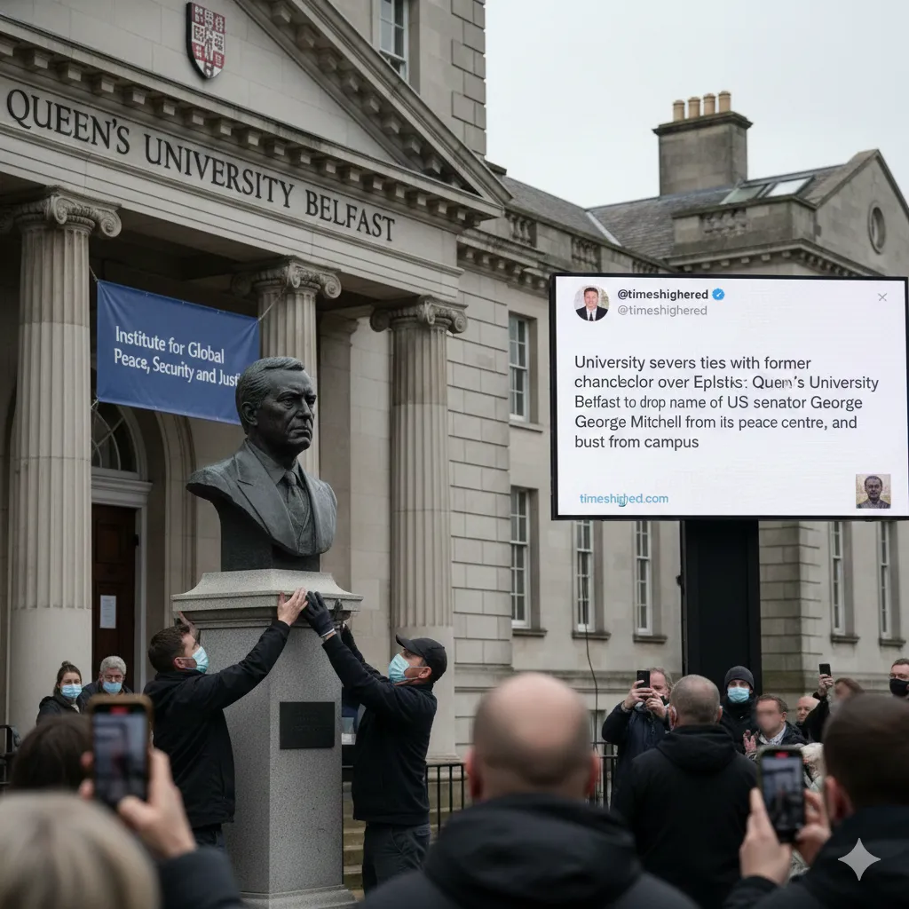 “Queen’s University Belfast cuts ties with George Mitchell over Epstein links @QUBelfast is going to remove the name Senator George J Mitchell, from the Institute for Global Peace, Security & Justice, and remove a commemorative bust from its campus.”