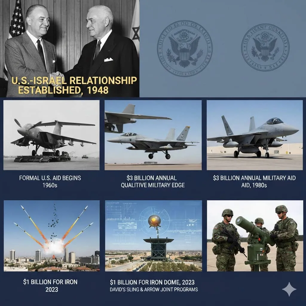 The U.S.-Israel relationship dates to Israel's founding in 1948, with formal aid beginning in the 1960s. Annual assistance reached $3 billion by the 1980s under a memorandum ensuring Israel's military superiority.